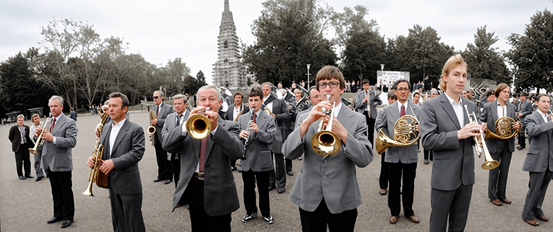 Театрализованное представление «Мир дому твоему» на стадионе «Строитель», посвященное 875-летию города Владимира. Выступление сводного духового оркестра. 20 августа 1983 г. Скуратов Сергей Юрьевич