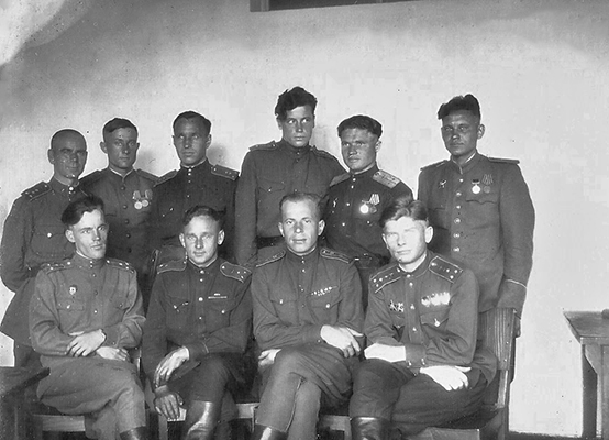 Из газеты «Сталинский сокол» №29 от 16.07.1943 г. «Орловско-Курское направление. Четверка истребителей в боях с 5 по 10 июля сбила 16 самолетов противника. На снимке: старший лейтенант П. Трубников, младший лейтенант В. Чистяков, лейтенант С. Колесниченко и старший лейтенант В. Башкиров.»