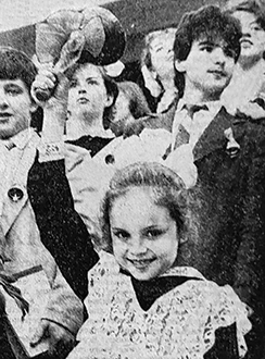 «Самый памятный звонок ...Был звонок на первый урок, звонок на первые летние каникулы. Всего за время учебы прозвучало их два десятка. И вот последний, самый волнующий и памятный. Во Владимирской школе № 23 имени А.Г. Столетова «Праздник последнего звонка» начался с выноса знамен пионерской и комсомольской организаций. Потом были приветственные слова директора школы 3.А. Григорьевой, классного руководителя С.В. Сухинина, представителей родительского комитета. Особенно счастлива в этот день была ветеран народного образования, заслуженный учитель школы РСФСР Г.Д. Максимова. Более сорока лет она преподает в начальных классах, и в нынешнем году у нее пятнадцатый выпуск юношей и девушек, которые до сих пор для учителя остались мальчиками и девочками, семилетними пришедшими к ней в 1978 году в первый класс. Ребята говорили Глафире Дмитриевне добрые слова, вручили памятную медаль, букеты весенних цветов. Но главным подарком для учительницы, конечно же, стали знания, с которыми ее ученики идут на выпускные экзамены, вступают во взрослую жизнь. Слова благодарности учителям школы от выпускников звучали и на английском языке, ведь ребята со второго класса учат его. Учащиеся школы вносят свой вклад в установление партнерских отношений между Владимиром и английским городом Кентербери. А потом первоклассница Наташа Зуева дала последний звонок. Последний школьный и первый на взрослую жизнь. Ю. СЛАВИН» («Призыв», 26 мая 1988).