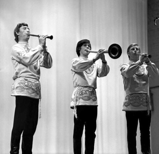 Выступление рожечников ансамбля "Русь" во Владимирской областной филармонии. 1981 г.