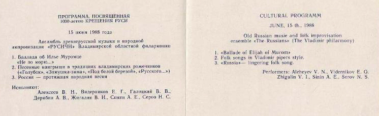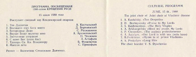 Программа, посвященная 1000-летию крещения Руси 15 июня 1988 г. в г. Владимире.