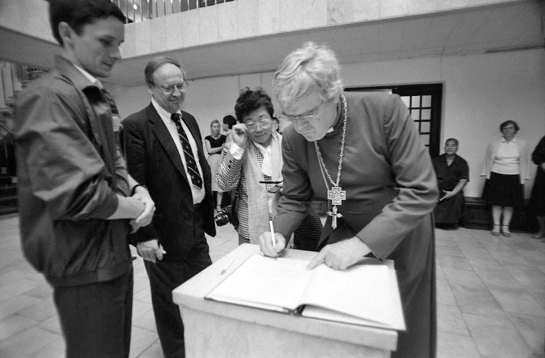 Примас Англиканской церкви Канады Пирс Майкл Джеффри оставляет запись в книге почетных посетителей в Картинной галерее Владимиро-Суздальского музея-заповедника.