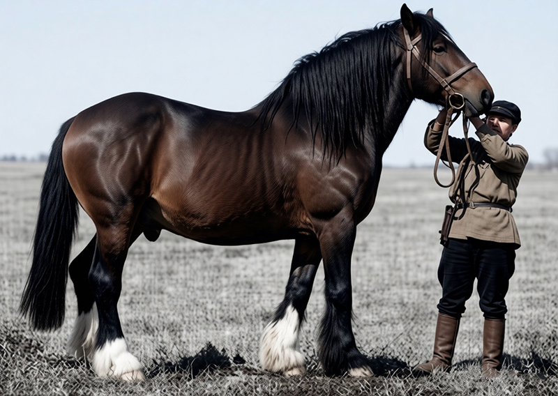 База лошадей-богатырей Владимирская губерния издавна обладала более крупной лошадью по сравнению с другими губерниями. По данным военноконной переписи 1882 года лошадей, имеющих рост более 142 сантиметров, в Суздальском уезде было 43 процента, в Юрьев-Польском — 47, в то время как в Европейской части России - 11 процентов. Через 30 лет, в 1912 году, по данным такой же переписи рослых лошадей в Суздальском уезде было 61,2 процента, в Юрьев-Польском — 82,1 и по Европейской части России—31,9. Как видно, еще с давних времен владимирскими крестьянами проведена большая работа по улучшению лошади. Созданная в 1886 году Владимирская государственная конюшня уже имела благоприятную среду для своей работы. Она была укомплектована жеребцами различных пород, из 32 жеребцов было 5 верховых, 9 рысистых и 18 рабочих, в числе рабочих 5 арденов, 3 першерона, 4 суффолька, остальные—метисы этих пород. В основном местные лошади начали улучшаться с 1901 года клейдесдалями, завезенными профессором Кумшевали в количестве 31 жеребца. В 1910-12 годах был дополнительный ввоз из-за границы 6-ти клейдесдалей и 10-ти шайров. В дальнейшем крупных пополнений за счет вывозных жеребцов из-за границы не было и последние 20 лет наличие жеребцов пополнялось за счет выращенных в колхозах. Этот период является наиболее интересным в создании новой породы лошадей, так как он относится к периоду коллективизации сельского хозяйства. Дореволюционная Россия из-за низкой техники мелкого индивидуального крестьянского хозяйства и небольшого запроса в то время со стороны промышленности, мало интересовалась созданием крупной рабочей лошади. После Октябрьской социалистической революции и особенно с момента коллективизации сельского хозяйства работа по созданию отечественных тяжеловозов усилилась, с этого момента начали не только работу специалисты на местах, но и научно-исследовательские учреждения. В создании и совершенствовании этой породы наибольшее участие принимали заведующий кафедрой коневодства Ивановского сельскохозяйственного института М.П. Корзенев, бывший директор Гаврилово-посадского госплемрассадника Сазонов, из специалистов Владимирской области — главный зоотехник Суздальского райзо тов. Захаревич, инспектор Государственного племрассадника Юрьев-Польского района тов. Поцелуева и др, В районах разведения тяжеловозов — Юрьев-Польском и Суздальском — с момента коллективизации проделана огромная работа по усовершенствованию этой породы. Создана густая сеть коневодческих ферм, основных пунктов коневодства. Из 241 колхоза, имеющегося в этих районах, в 85 организованы коневодческие племенные фермы, насчитывающие 3477 лошадей. Из общего количества осмотренных в 1945 году коней в этих районах выявлено породных 3900 голов или 61 процент к общему поголовью. В результате проведенной большой зоотехнической работы, путем отбора и подбора, вдумчивой работы владимирских крестьян, а позднее колхозников, создана отечественная порода тяжеловозных лошадей, сочетающая крупность и массивность с хорошими движениями на шагу, на рыси и энергичным темпераментом. В подтверждение этого можно привести несколько примеров работоспособности лошадей новой породы. В колхозе «Возрождение», Суздальского района, однолемешным плугом каждая лошадь вспахивала в день до одного гектара, а в отдельных случа