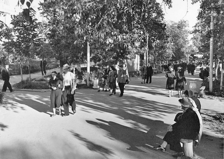 «Городской парк представляет собой жалкое зрелище. Газоны вытоптаны, клумбы со случайно уцелевшими цветами не огорожены, на дорожках валяется невыметенное сено и сор, здание читальни пришло в полную ветхость и каждую минуту грозит обвалом (правда, это не так страшно, так как читальня давно не функционирует). В несколько лучшем положении находится эстрада, на которой жители Владимира хоть один раз, но видели выступления. Но хмурый вид эстрады говорит о том, что я она устала жить. Наиболее оживленным местом в парке является танцевальная площадка. Сюда каждый вечер стекается много молодежи, желающей отдохнуть и повеселиться. Но дырявый пол площадки, кое-где заклепанный железками, ежедневно поглощает не одну пару каблуков и подошв и поневоле охлаждает молодой пыл. Радиола часто бездействует. На площадке хозяйничают развязные завсегдатаи. Директор парка Кошутин рассказывает: — В бездействии эстрады виноват радиоузел, который не дает усилителя и срывает намеченные лекции и концерты. В запущенности газонов виноваты посетители, не слушающие никаких уговоров. Для ремонта площадки есть и средства, и материал, но время военное, сами понимаете, никак не достать транспорта. Что же касается безобразий и хулиганства, то бывает ведь еще хуже... Очевидно, тов. Кошутин полагает, что разорванное платье, потерянный каблук, удар палкой или плевок в спину — это не так уж плохо, спасибо еще, что посетителей парка не уносят на санитарных носилках, а они удирают сами. Причины, указанные Кошутиным, очень объективны. Пора понять ему, что работу директора парка никто другой за него выполнять не будет. Правильно организованный отдых поднимает производительность труда, это известно всем. Пора бы знать это и Кошутину, а не ссылаться на трудности военного времени» («Призыв», 7 июля 1943).