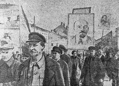 «Демонстрация В демонстрации участвовало около 30 тысяч трудящихся Владимир, 1 мая Солнечный Первомай трудящиеся Владимира встретили с огромной радостью. В 8 часов утра с различных концов города по-праздничному одетые стали стекаться трудящиеся к назначенным местам сбора на демонстрацию. Город, украшенный празднично, наполнялся тысячами радостных, счастливых трудящихся. До начала демонстрации в разных местах города наблюдалось оживленное веселье. В парке играл духовой оркестр завода «Автоприбор». В «Липках» хор первой советской больницы исполнял песни. Радостные улыбки сияли на лицах трудящихся. Всюду слышались смех, шутки. Колонны со знаменами, портретами великого Сталина, его боевых соратников мощным потоком двинулись по центральным улицам города, на площадь. Идут учащиеся города, самые счастливые в мире дети. У школьников масса цветов. Проходят авиамоделисты Дома пионеров — будущие гордые соколы нашей родины. Они, приподняв, несут свои авиамодели. Мощной колонной движется коллектив химзавода. В голове колонны — портрет гения человечества великого Сталина. Вслед за колонной химзавода проходят колонны фабрики «Пионер», грамзавода, завода «Автоприбор» и другие. В колонне железнодорожников две автомашины, на одной разместился хор, на другой — оркестр народных инструментов. Звучит мощно бодрая песня. Во время остановки на улицах в колоннах — все сильнее и сильнее вспыхивало, горело веселье. В колонне грамзавода заиграл духовой оркестр. Образовался круг, начались танцы. В других местах также гремят оркестры, раздаются звуки гармоники. Вот здесь танцуют студенты фельдшерско-акушерской школы, там — железнодорожники. До половины дня двигались колонны на площадь. Это шел ликующий народ, демонстрировавший в день Первое Мая свою мощь, свою непобедимость, горячую любовь к большевистской партии, к великому Сталину. *** Митинг открывается вступительной речью председателя горсовета тов. Сидорова. Трудящихся приветствуют секретарь горкома ВКП(б) тов. Энодин, представитель краснознаменного химического завода тов. Богачев, секретарь горкома ВЛКСМ тов. Яманов и тов. Фадеев. Началось прохождение колонн мимо трибуны. Это было замечательное шествие, которое открыли осоавиахимовцы. Мимо трибуны, где находились руководители городских и районных организаций, четким шагом, в синих комбинезонах прошли будущие летчики — учлеты Владимирского аэроклуба. — Да здравствует товарищ Сталин! — Да здравствуют советские летчики, гордые соколы нашей родины! — раздаются приветствия с трибуны. — Ура! — восторженно отвечают осоавиахимовцы. Мимо трибуны пошли дружные, веселые советские дети — ученики старших классов города. Сколько радости и счастья в их веселых, задорных лицах! Сколько любви к великому вождю, нежному и заботливому отцу Иосифу Виссарионовичу Сталину! И они с любовью убрали цветами его портрет. Над головами детских колонн — лес красных знамен, портреты руководителей партии и правительства, портреты Героев Советского Союза — славных летчиков нашей страны. Вот группа детей, высоко подняв над головами, гордо несет географическую карту. На ней жирной чертой пересечено огромное пространство над сушей и над морем — это новый воздушный путь, проложенный бесстрашными летчиками Героем Советского Союза Владимиром Коккинаки и майор