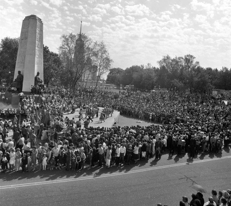 Выступление танцевального коллектива на площади Свободы в День города Владимира. 31 августа 1986 г. Фото Привезенцева Андрея Владимировича