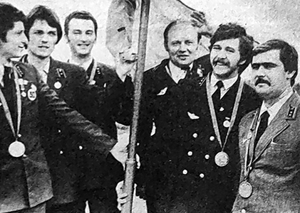 «ЗА ВЫСШИЕ ТИТУЛЫ ВЧЕРА в Будапеште стартовал XXII чемпионат мира по спортивной гимнастике. В составе мужской сборной СССР вместе с Дмитрием Билозерчевым, Александром Погореловым, Артуром Акопяном, Богданом Макуцем выступают и два наших земляка — Юрий Королёв, которому предстоит отстаивать завоеванный два года назад титул абсолютного чемпиона мира, и Владимир Артёмов, дебютирующий на чемпионате мира. Среди арбитров, оценивающих выступления сильнейших гимнастов планеты, — чемпион трех олимпиад владимирец Николай Андрианов. Владимирцам предстоит в эти дни следить за ходом еще одного высшего спортивного форума — завтра в Москве начинается очередной чемпионат мира по тяжелой атлетике. Впервые среди соискателей наград мирового достоинства выступает представитель Владимирской области — студент ВПИ Павел Кузнецов. Любители тяжелой атлетики смогут увидеть выступление земляка по телевидению: наш спортсмен выйдет на помост вместе со штангистами категории до 100 кг. В. КРАВЧЕНКО» («Комсомольская искра», 21 октября 1983). «12—13 ноября во Владимире, во Дворце культуры и техники ВПО «Точмаш» проходил городской фестиваль антивоенной песни, посвященный Всемирному дню молодежи.