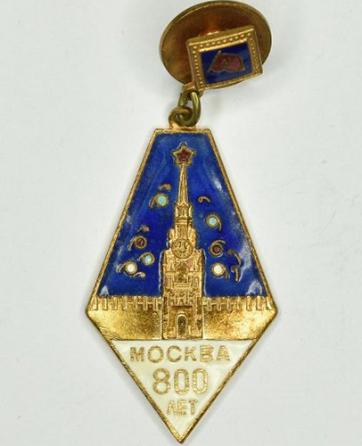 Наградная медаль «В память 800-летия Москвы». Учреждена Указом Президиума Верховного Совета СССР от 20 сентября 1947 г. Значок юбилейный. Значок «Москве 800 лет»