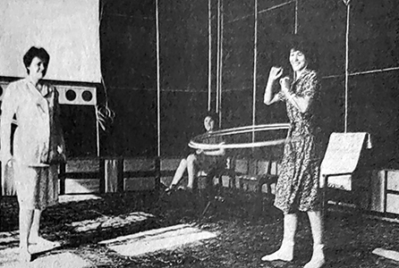 Художник-оформитель В.С. Гусев и рабочий Ю.А. Воронков. Занятия оздоровительной гимнастикой, в комнате отдыха В комнате гидромассажа