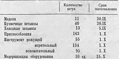 Кроме того, на тракторе ВТЗ-28 улучшен и облегчен дифференциал, а также упрощена кинематическая схема рулевого управления и снижены усилия на штурвале на 30 процентов. Увеличение дорожного просвета исключает необходимость производства дополнительной модификации трактора со сближенными передними колесами. Повышение мощности двигателя и транспортной скорости позволит использовать трактор на транспортных работах, в том числе и на вывозке хлеба, и заменить нерационально используемый в течение большей части года на с/х работах автомобильный транспорт. В течение нынешнего сезона три трактора ВТЗ-28 проходят испытание в ЦМИС МСХ СССР и один трактор хлопковой модификации отправлен на испытание в САМИС МСХ СССР. Испытания машин в ЦМИС уже заканчиваются. Тракторы проработали по 1500 часов. Производится динамометрирование, после чего будет проведен микрометраж. Предварительные заключения положительные. Тракторы в течение 1500 часов не потребовали ни регулировок, ни ремонтов, за исключением поломки рычагов гидросистемы на одном из тракторов. Это очень важно для нас, так как завод в целях ускорения внедрения улучшенного трактора в производство, допуская технический риск, не дожидаясь результатов испытаний, проводит подготовку производства этого трактора на массовый выпуск. СОСТОЯНИЕ ПОДГОТОВКИ ПРОИЗВОДСТВА ВТЗ-28 Согласно утвержденных мероприятий и графику, завод обязан внедрить в производство: 1. Новую унифицированную раздельно-агрегатную гидросистему в сентябре 1957 года. 2. Новый дифференциал, тормозные устройства, модернизированную коробку перемены передач и новую муфту, сцепления в III квартале 1957 года. 3. Новые узлы, рулевое управление, передний мост, лонжероны, двигатель и облицовку трактора в IV квартале 1957 г. 4. Начать выпуск трактора ВТЗ-28 «Владимирец» в январе 1958 года. Задача очень большая и требующая исключительно напряженной работы коллектива завода и большой помощи со стороны Совнархоза. Объем работ по подготовке производства и готовность их характеризуются следующими показателями: I. ПО НОВОЙ ГИДРОСИСТЕМЕ (срок внедрения сентябрь 1957 г.) Подготовка производства на заводе по новой гидросистеме закончена. В настоящее время производится отладка оборудования и технологической оснастки с таким расчетом, чтобы не позднее 15 сентября начать и в течение сентября перейти полностью на выпуск тракторов ДТ-24 только с новой гидросистемой. Кроме нашего завода на новую гидросистему трактора ДТ-24 должны изготавливать и поставлять детали и узлы 10 заводов. Наибольшее опасение по срокам поставки вызывают заводы: Минский тракторный, Московский «Каучук», Куйбышевский. Необходимо еще раз обязать эти заводы начать поставку деталей и узлов немедленно. II. ВНЕДРЕНИЕ В ПРОИЗВОДСТВО НОВОГО ДИФФЕРЕНЦИАЛА, ТОРМОЗНЫХ УСТРОЙСТВ, МОДЕРНИЗИРОВАННОЙ КОРОБКИ ПЕРЕМЕНЫ ПЕРЕДАЧ И НОВОЙ МУФТЫ СЦЕПЛЕНИЯ (срок III квартал 1957 г.) Конструирование и изготовление оснастки для этих узлов несколько продвинулось против первоначального графика. Недостающая оснастка будет изготовлена в следующие сроки: