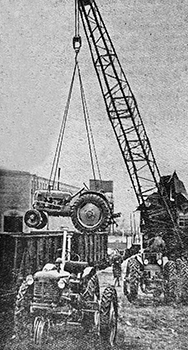 Погрузка владимирских тракторов на железнодорожные платформы.