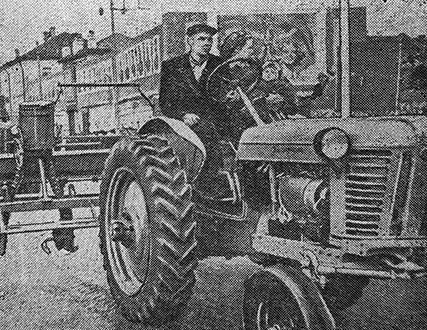 «ЗАВОЕВАЛИ КРАСНОЕ ЗНАМЯ Рассмотрев итоги социалистического соревнования промышленных предприятий города за март, бюро горкома КПСС и исполком горсовета присудили коллективу нашего завода первое место. Тракторостроителям вручено переходящее Красное знамя. СОБРАНЫ НОВЫЕ МАШИНЫ Еще совсем недавно замыслы конструкторов, настойчиво работавших над созданием образцов новых машин, были воплощены только лишь в чертежах. И вот сейчас, в канун первомайских торжеств, в экспериментальном цехе стоит несколько новых тракторов, собранных умелыми руками производственников экспериментального цеха. Здесь трактор с двигателем воздушного охлаждения, которому не страшны ни жестокий мороз Заполярья, ни южная жара. Коллектив цеха собрал также тракторы с ведущим передним мостом, на полугусеничном ходу, с откидными почвозацепами, с уширителями, которые отличает высокая проходимость, способность работать на влажных почвах. ПО ПУТИ, УКАЗАННОМУ ПАРТИЕЙ Е. САРКИСЯНЦ, главный конструктор завода, лауреат Сталинской премии Разработанные Центральным Комитетом КПСС и Советом Министров Союза ССР мероприятия по дальнейшему развитию колхозного строя и реорганизации МТС по-новому ставят перед нами вопрос о конструировании тракторов для сельского хозяйства. Мы должны более глубоко изучать условия работы тракторов в колхозах и особенно тщательно знакомиться со взаимодействием тракторов с сельскохозяйственными орудиями. Тракторы класса 25 — 30 лошадиных сил в настоящее время, как правило, агрегатируются с навесными сельскохозяйственными машинами, что при наличии управления ими гидравлической системой, дает возможность обслуживать тракторный агрегат одним человеком — трактористом. Возможность навешивания максимально большого количества сельскохозяйственных орудий и является одним из основных требований к новым машинам, над которыми работает коллектив конструкторов нашего завода. Можно сказать, что тракторы Т-28 «Владимирец», которые сейчас сходят с конвейера, отвечают этим требованиям. Они могут агрегатироваться с 61 сельскохозяйственным орудием. Трактор «Владимирец» по своей основной характеристике сильно отличается от своего предшественника ДТ-24. Повышенная мощность двигателя обеспечивает большую производительность. Увеличено количество основных передач, причем две транспортные скорости в 19 и 25 километров в час дают возможность широко применять трактор на транспортных работах. Соответствующая регулировка топливного насоса и новая выхлопная труба позволили сократить расход топлива на 10 граммов на лошадиную силу в час, что дает за смену экономию почти 2 килограмма топлива или 300 килограммов за сельскохозяйственный сезон. Трактор «Владимирец» на 390 килограммов легче трактора ДТ-24. Облегчение веса, помимо экономии металла, дает возможность новой машине работать на более низком давлении в шинах. Кроме повышения коэффициента полезного действия, это уменьшает повреждаемость структуры почвы, что очень важно с точки зрения агротехники. Над созданием конструкции трактора Т-28 работали коллективы конструкторских бюро под руководством тт. Полетаева, Мартынова, Тептелева, Берадзе. Много пришлось потрудиться и испытателям во главе с тов. Эфрос. Несмотря на то, что с конвейера сошло лишь несколько сот новых тракторов и еще не решен ряд в