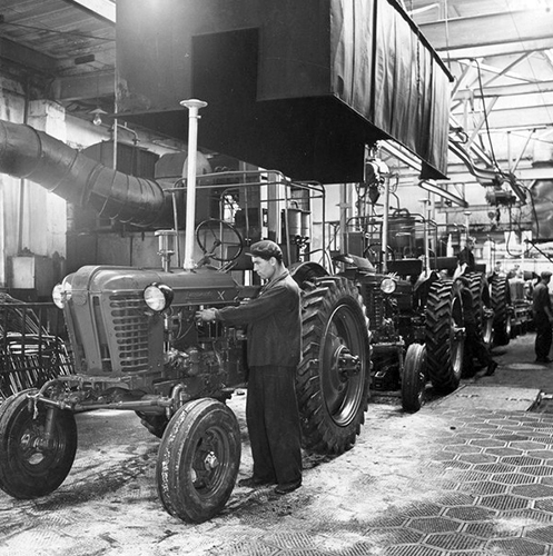 Конвейер сборки тракторов на Владимирском тракторном заводе им. А.А. Жданова. 1958 г.