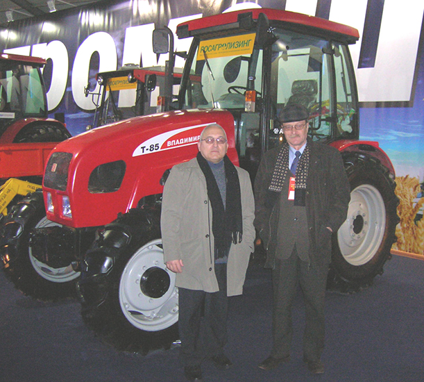 Трактор Т-85 с трансмиссией итальянской фирмы «Каррара» и двигателем английской фирмы «Перкинс» Зам. главного конструктора Цевелев А. и ведущий конструктор Маркелов Валерий.