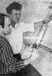В. Капленко вместе с инженером В. Семеновым обсуждают новое задание